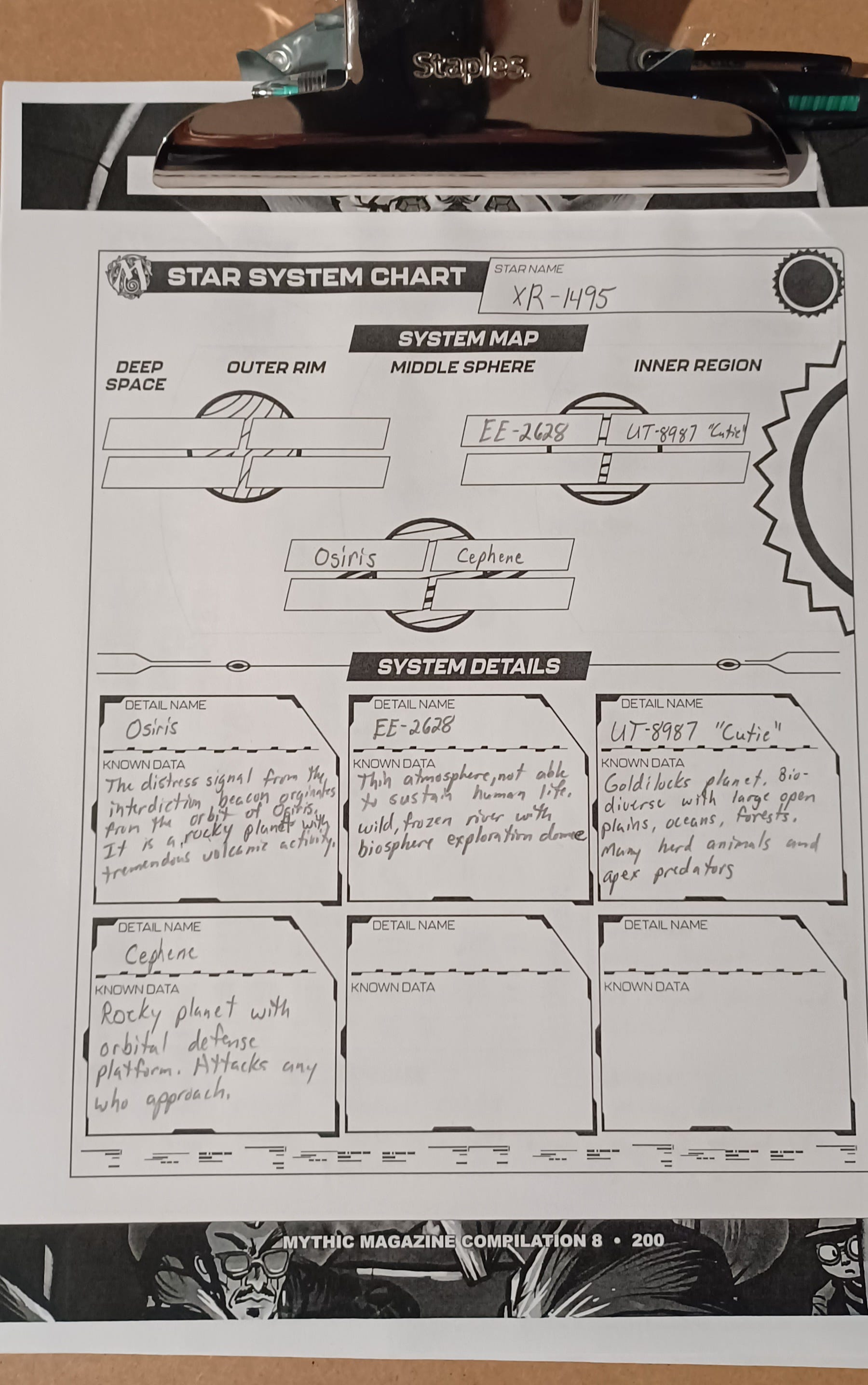 The star system will have certain aspects that we will roll up from the provided tables. It will consist of the star’s name, number of explorable planets, and other distinguishing features.